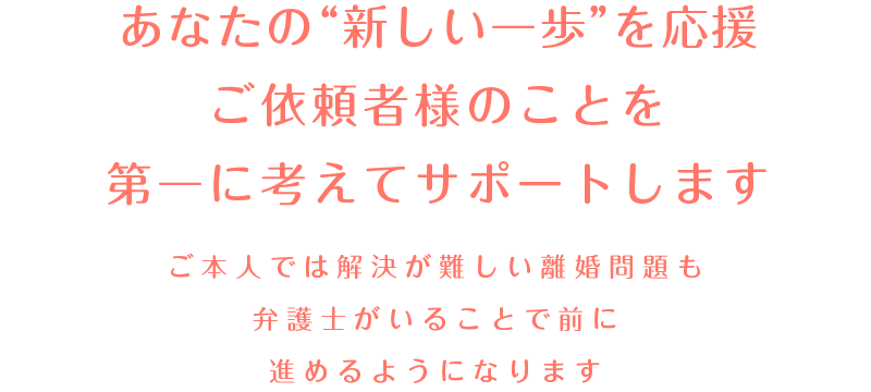 ご依頼者様が何を望まれているのか?よく把握したうえで、その思いを第一に考えて離婚問題をサポートいたします。